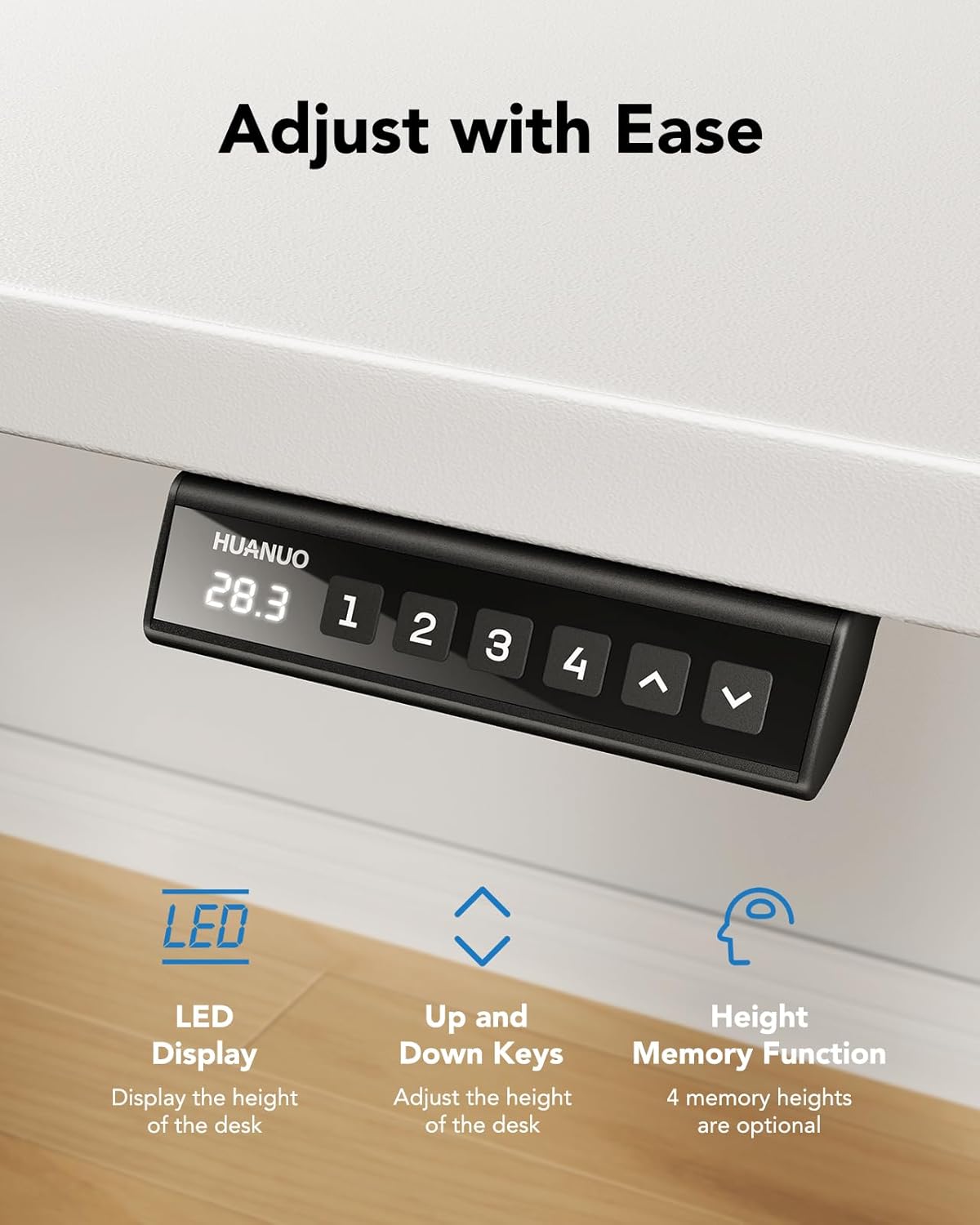 Designed in a sleek and modern white finish, this standing desk not only complements any home office decor but also promotes a clean and organized workspace. Say goodbye to sedentary work habits and hello to a healthier, more dynamic work routine with the HUANUO Electric Standing Desk. Elevate your workday – literally.